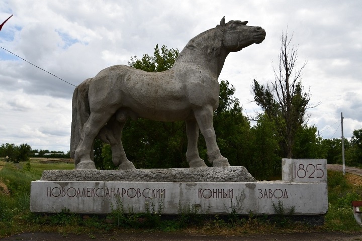 Памятник жеребцу «Кокетливый» у въезда на конезавод Новоалександровский