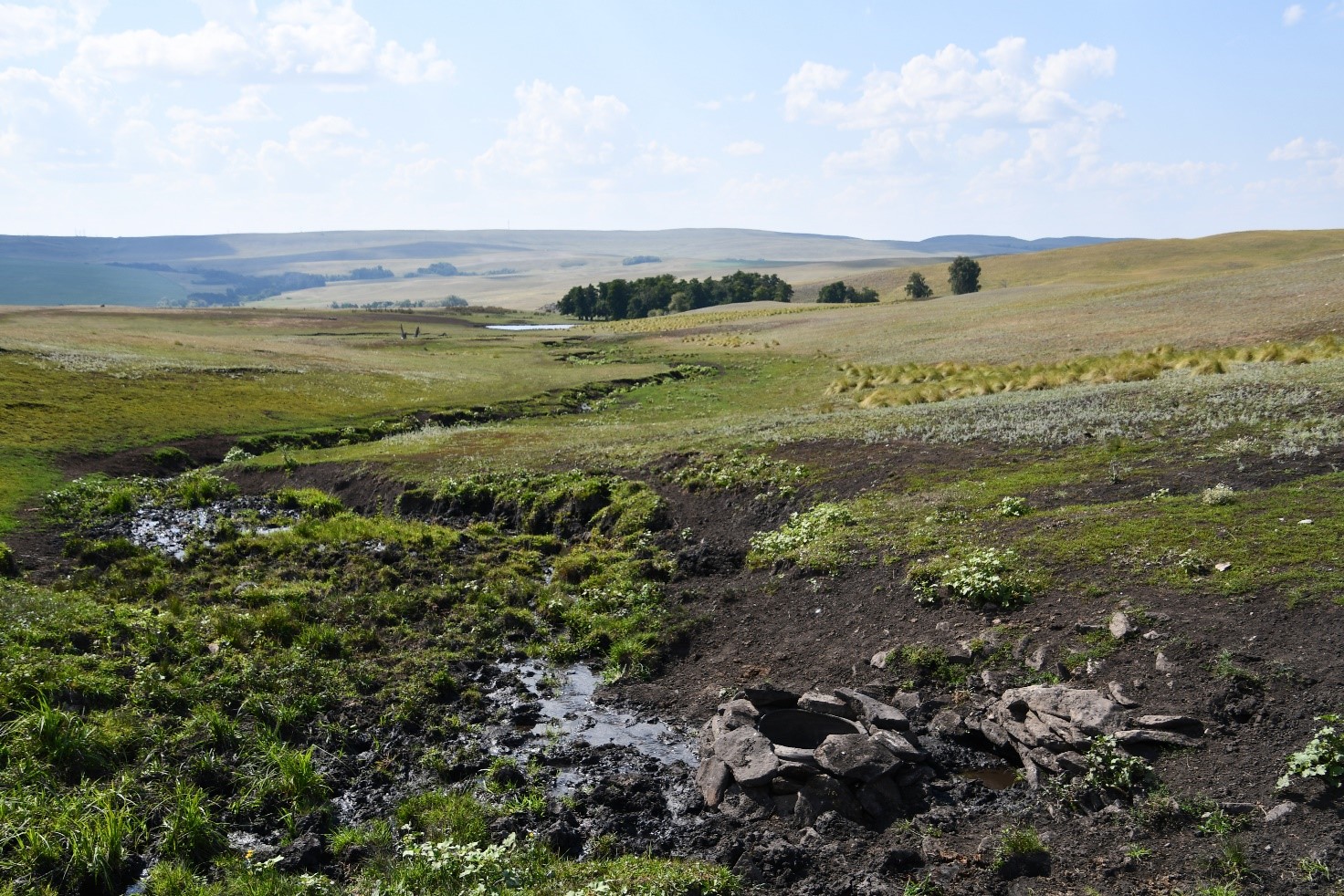 Во время последнего выезда основное внимание было уделено выявлению и оценке современного состояния карстовых ландшафтов, связанных нижнепермскими кунгурскими гипсами и известняками внешней зоны складчатости, которая проявляется в ландшафте в виде т.н. курмаинской антиклинали, а в рельефе Долгими горами или хребтом Карамурунтау («Волнистые горы»).