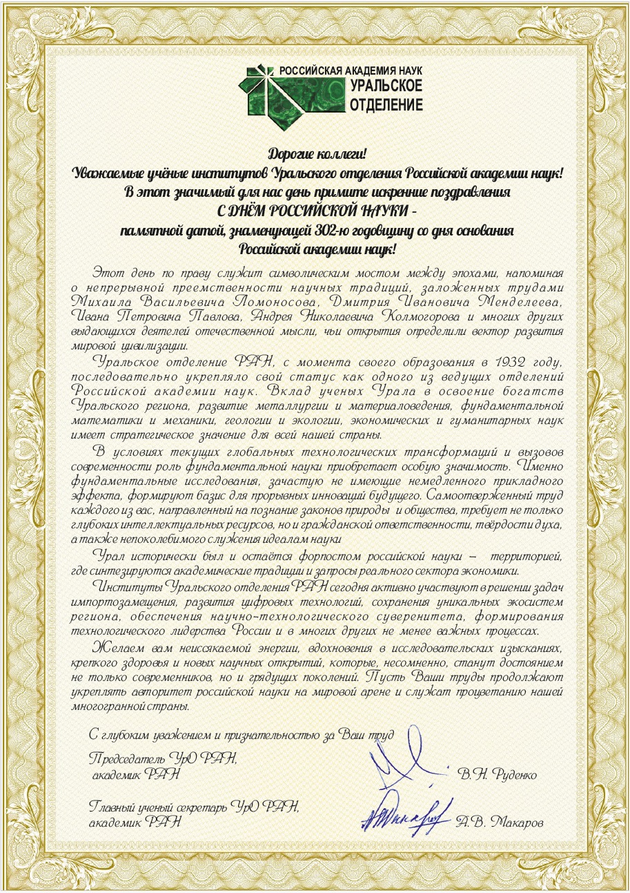 Коллектив Института степи УрО РАН поздравляет всех причастных с Днем российской науки! Пусть этот праздник вдохновляет на научную деятельность, новые идеи и открытия, смелые решения! Желаем плодотворности и результативности в работе!
