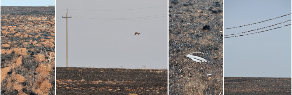 Поверхность гари плотно покрыта норами и пороями мелких мышевидных грызунов; за отсутствием укрытий растительного покрова они становятся легкой добычей для хищников. По этой причине во время прохождения пожаров и некоторое время спустя отмечается повышенная концентрация охотящихся хищных птиц (степной орел, обыкновенная пустельга, болотный лунь и др.). Перед началом сезонных миграций наблюдалось скопление скворцов, кормящихся на сгоревшем участке степи.