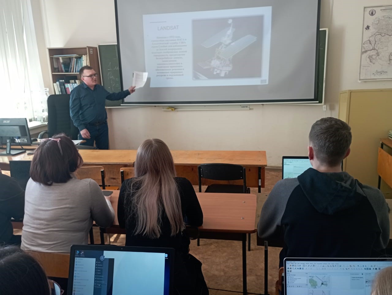 Ключевым элементом встречи стал практический мастер‑класс по работе в программе QGIS. В рамках занятия студенты познакомились со спектральными каналами спутников Landsat 8 и Landsat 9, освоили работу с новыми плагинами, применяемыми в географических исследованиях, а также изучили инструмент выгрузки SRTM‑файлов для выбранной территории.
