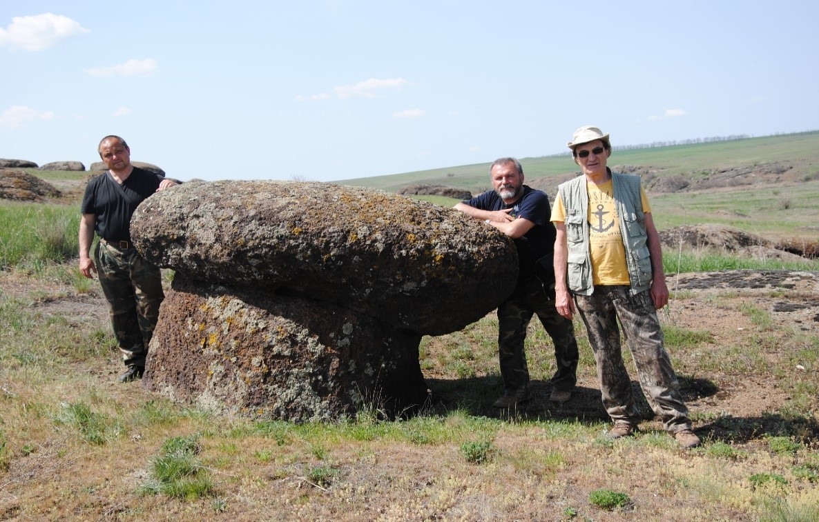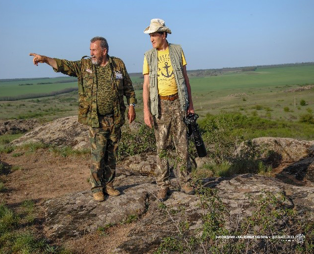 | «Каменные могилы». Слева многолетний хранитель участка В.А. Сиренко (2013) | Отделение заповедника «Кальмиусская степь» |