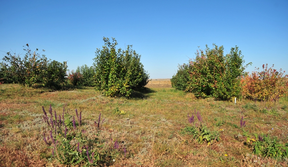 Наблюдения за период испытаний показали высокую приживаемость растений, близкую к 100% (рис. 3; табл. 1). Прижившиеся растения сохранились в течение всего периода наблюдений, несмотря на столь жесткие погодные условия (температура зимнего и летнего периода, незначительное количество атмосферных осадков, невысокий снежный покров и глубокое промерзание почвы). К этому следует добавить – в степных условиях наблюдаются сильные господствующие ветра, приводящие к летнему и зимнему иссушению плодовой древесины и гибели плодовых почек. В настоящий момент защита насаждений лесными полосами отсутствует. Несмотря на это состояние насаждений оценивается на 4-5 баллов.