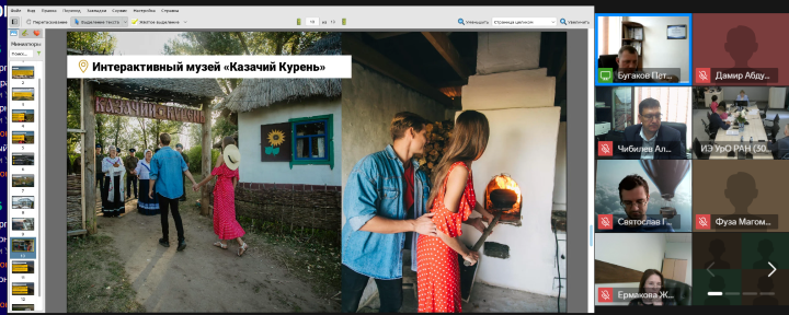В докладе ведущего научного сотрудника отдела социально-экономической географии Института степи Уро РАН Александра Александровича Чибилева (мл.) представлены результаты работы сотрудников отдела по теме государственного задания «Проблемы степного природопользования в условиях современных вызовов: оптимизация взаимодействия природных и социально-экономических систем». Особое внимание Александром Александровичем уделено особенности Института степи как организации, у которой есть уникальная возможность не только оценивать и анализировать современное состояние туристско-рекреационного комплекса в своих исследованиях, но и участвовать непосредственно в его организации и формировании. Заповедники, национальные парки, заказники и памятники природы, созданные при участии сотрудников Института степи, играют важную роль в развитии туристско-рекреационного комплекса Оренбургской области. Изучение традиций местного населения, народных промыслов и исторических памятников помогает создать интересные маршруты и программы для этнографического туризма.Исследования влияния аграрных технологий на окружающую среду, которые проводятся сотрудниками отдела степеведения и природопользования Института позволяют разрабатывать концепции экологически чистого земледелия и животноводства, что актуально для сельского туризма. Участие специалистов Института в международных проектах и конференциях позволяет распространять передовой опыт охраны природы и рационального использования ресурсов степных областей. В свою очередь, это приводит к привлечению иностранных туристов и популяризации российских степных регионов через международные сети научных учреждений и турфирм.