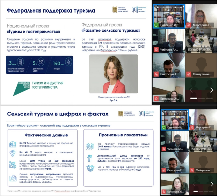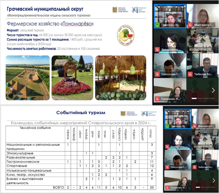 25 июня 2025 года в г. Екатеринбурге в рамках VIII Международного симпозиума по региональной экономике «Стратегия пространственного развития: вызовы и перспективы» состоялся круглый стол на тему: «Пространственное развитие туризма: региональные особенности, вызовы и перспективы», посвященный обсуждению современного состояния, новых трендов, проблем и перспектив развития туризма в регионах РФ. Особое внимание уделено специальным видам туризма (сельскому, аграрному, промышленному, научному, молодежному, лечебно-оздоровительному, экологическому и др.), а также туризму на особо охраняемых природных территориях. В обсуждении приняли участие: